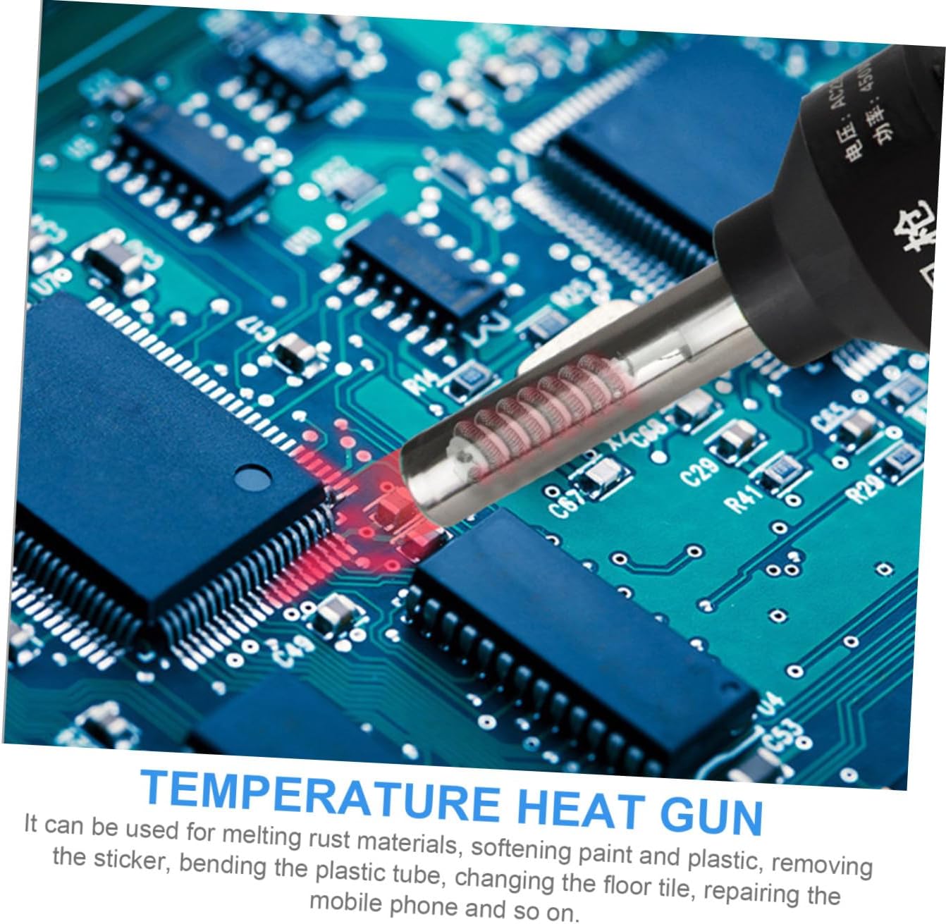Package List 1 heat 4 x nozzle Characteristics - Note: The Chinese and English logos are random lip. - Size: 31.00X7.00X7.00cm/12.18X2.75X2.75in aluminum - Rated Power: 450W heater. - Rated Voltage: 110V spray. - Current: 7A scale. - Material: Plastic and Metal compressor. - Note: The plug has three plugs hooks - Color: Black temperature. - Features wind, constant temperature, small temperature difference and quick temperature returning pvc - Applicable for desoldering mount components and protect the components lcd - Small in size, portable and easy to use master - Temperature and wind can be adjusted in a wide range temperature heat - Rotate the HEATER of the to adjust temperature. Clockwise for lower and anticlockwise for higher shrinkingGoods Informationtemperature can be used for melting rust materials, softening paint and plastic, removing the sticker, bending the plastic tube, changing the floor tile, repairing the mobile phone and so on.hot air conversion Hot is a common fabrication technique for manufacturing smaller items.diverter This item is an air heat.kit Please confirm the voltge of your area .air It produces of hot air softening the blown parts.valve Note: This item is only for 110V, not for
