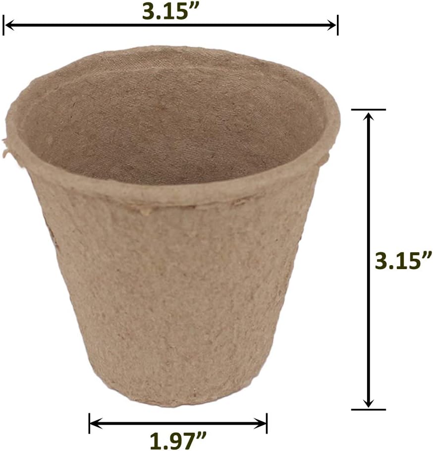 Use these peat pots in a ventilated environment or outdoors, let your plant grow faster.Package included: 200 pack Biodegradable Peat Pots 200 Pcs White Plastic Plant LabelsSize: 3.15" x 2.76" x 2.12"(Diameter x Height x Bottom) Plastic Plant Tags: 0.79” x 3.94” (Width x Height) Material:made from plant fibre. Natural, Biodegradable and Environmentally friendly, along with faster water absorption and retention, they absorb, hold up to extended watering. And you could put the whole peat pot in the ground, eco-friendly.. Function: Great for transplanting plants without causing root circulation or harm.They are degradable when planting, even if the seedlings don't grow, they can be composted. Perfect for seedlings, especially tender rooted vegetable seedlings, cuttings, or transplanting. This is a good choice for gardeners!