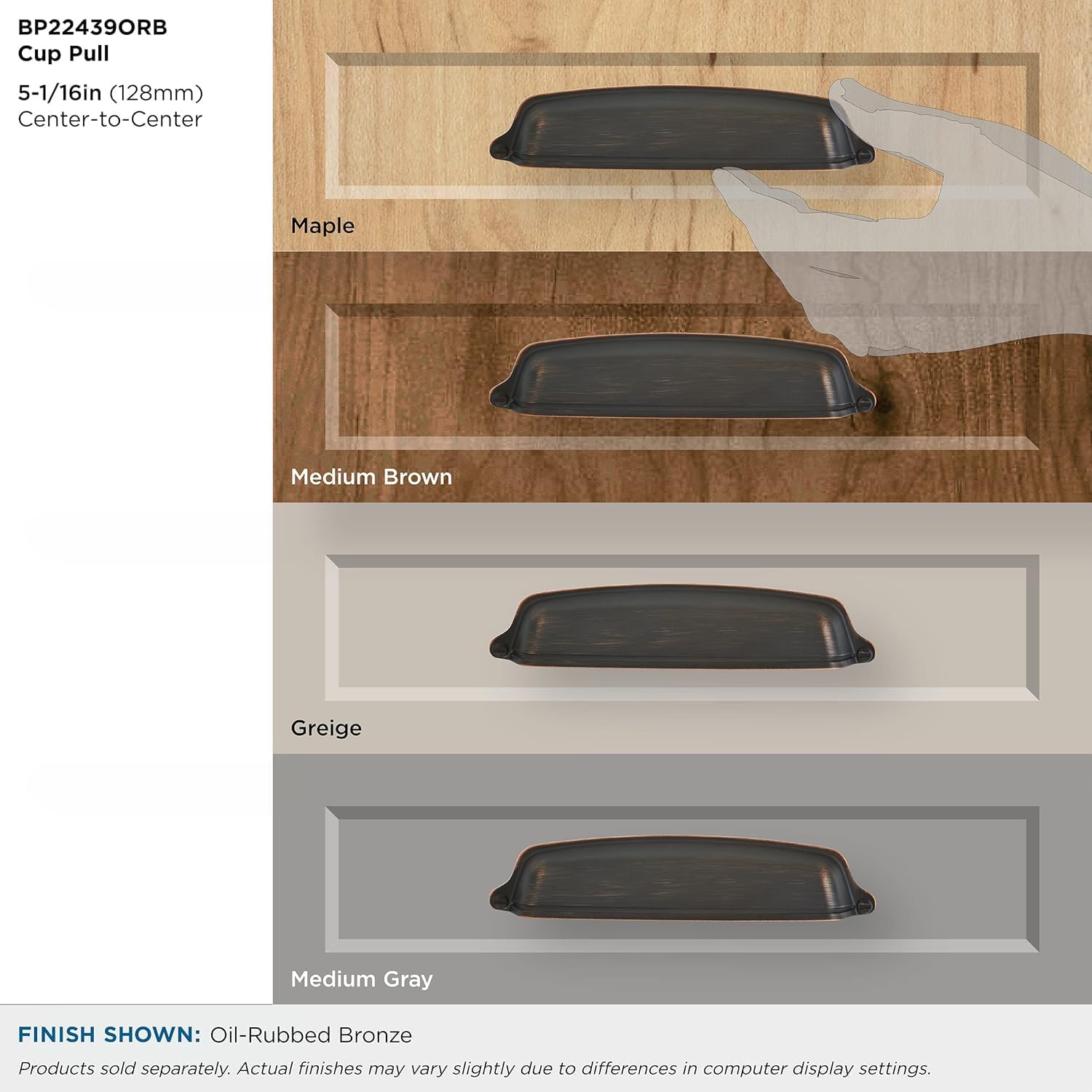 The Allison by Amerock 10BX22439ORB Stature 5-1/16 in (128 mm) Center-to-Center Cup Pull is finished in Oil Rubbed Bronze. Stately and substantial, the Stature collection’s features classic, bold designs that are underlined with timeless appeal. Adding depth to any space, the rich burnished nature of Oil-Rubbed Bronze sparkles with copper brush marks and embraces the beauty and craft of old-world artistry. Founded in 1928, Amerock’s award-winning home solutions including decorative and functional cabinet hardware, bath accessories, decorative hooks and wall plates have built the company’s reputation for chic design accessories that inspire homeowners to express their personal style. Ideal for residential or commercial applications, Allison by Amerock marries beauty and function. It’s the best combination of approachable artistry and lasting quality.