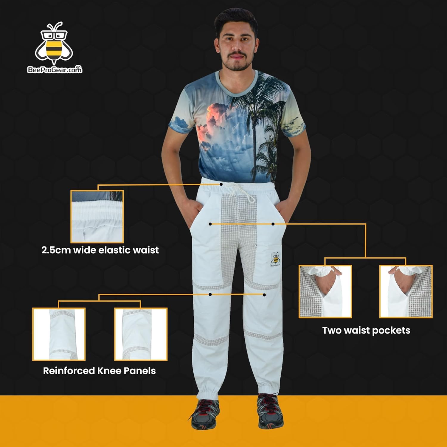 Crafted with a breathable, 3-layer mesh design, these pants offer superior sting protection while allowing air circulation and comfort. Suitable for both men and women, they provide a universal fit that ensures unrestricted movement during beekeeping tasks. Reinforced stitching and robust materials make these trousers ideal for long-term use in challenging beekeeping conditions. Elasticated waistband and ankle cuffs create a secure barrier to prevent bees from entering, without compromising mobility. Equipped with spacious tool pockets, perfectly positioned for easy access to hive tools, brushes, and other essential gear. Lightweight and easy to wear, these pants are perfect for quick inspections or full hive sessions. An essential item for both beginner and professional beekeepers seeking reliable lower-body protection without the bulk of a full suit.