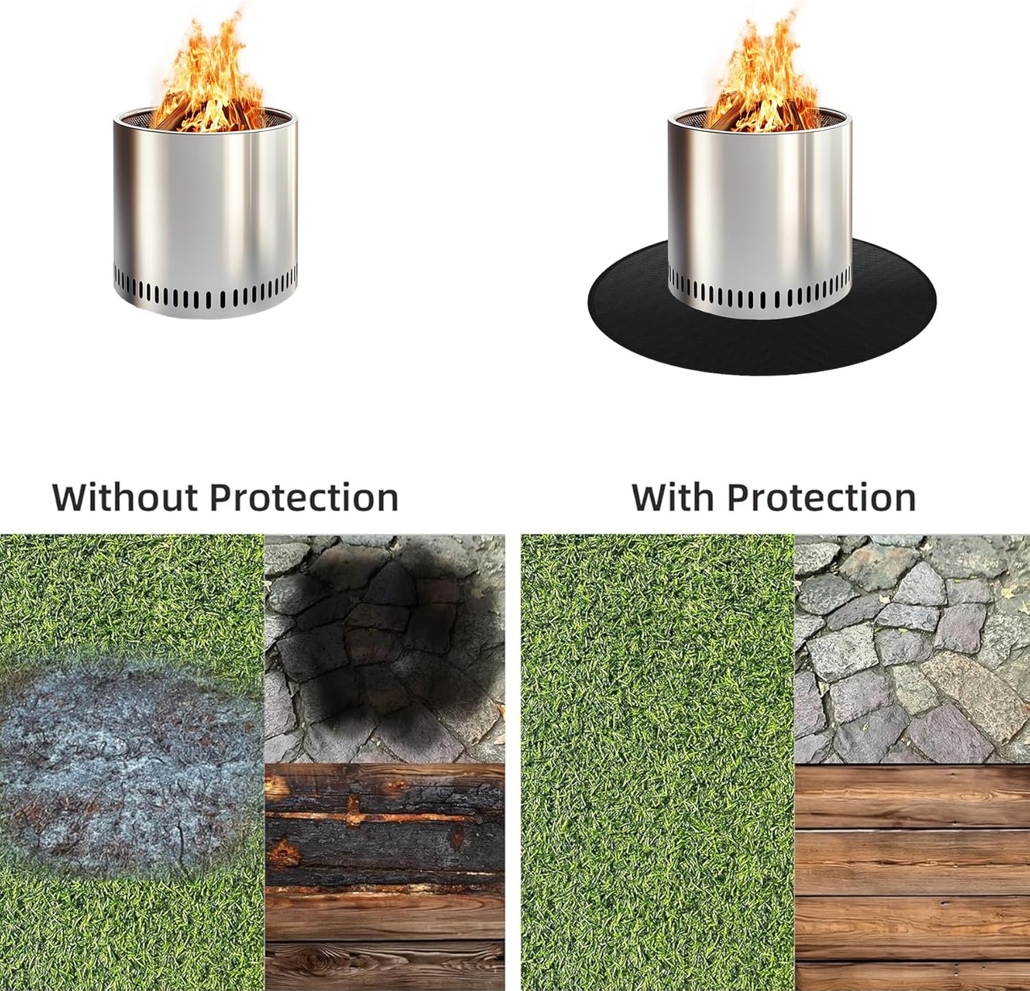Introducing the 38" Round Fire Pit Mat by Bummery, specifically designed for the Solo Stove Bonfire and Ranger 2.0. Crafted from durable, double-sided fireproof fiberglass, this mat offers reliable protection for your deck and patio, shielding them from sparks, embers, and hot grease. Its heat-resistant silicone coating on both sides ensures maximum defense against falling hot coals and embers, making it an essential outdoor fire pit accessory. The mat's waterproof and oil-resistant surface makes cleaning effortless—simply hose it off or wipe it with a damp cloth. With its portable and foldable design, it's versatile enough for use under fire pits, at outdoor camping sites, or as indoor family fire protection. Safety note: Always maintain at least 8 inches between the fire pit and the mat to ensure safe use. Protect your outdoor spaces with the Bummery Fire Pit Mat, combining convenience and superior fire safety!