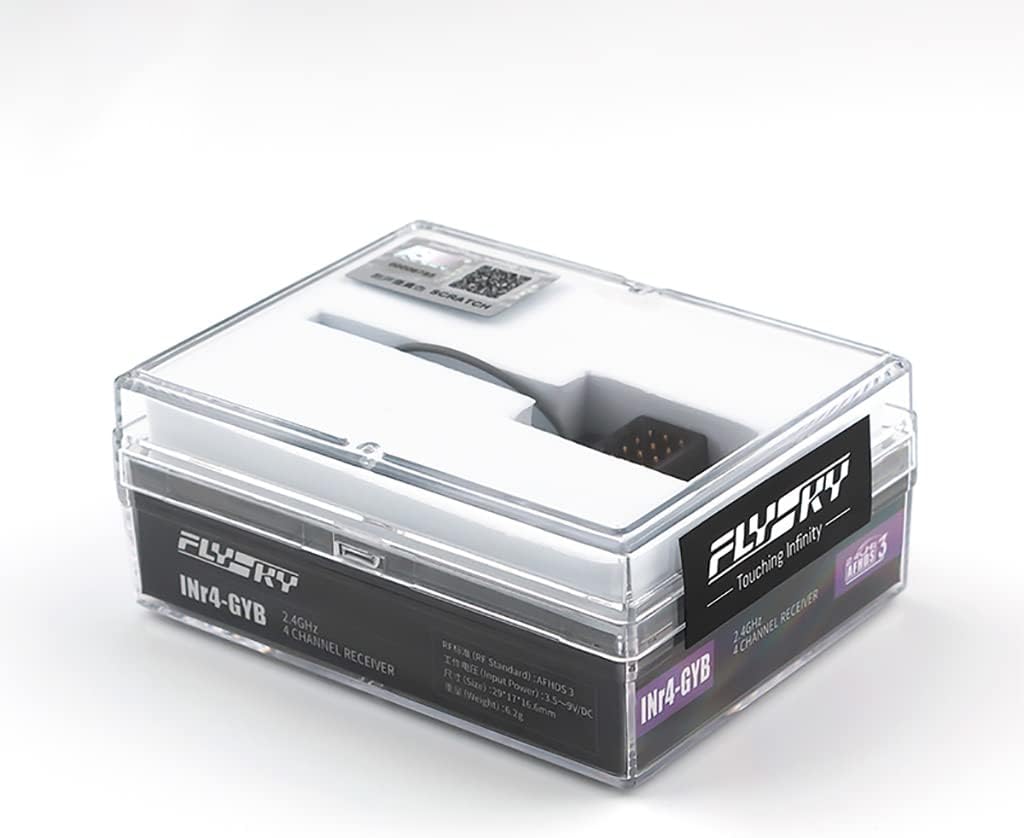 Flysky 2-4G INr4-GYB 4CH Receiver with AFHDS 3 Built-in Gyroscope Function for DIY Racing Quadcopters Drone Parameter: Adaptive transmitter: All surface transmitters which support AFHDS 3 protocol PWM Channels: 4 RF: 2-4G ISM 2-4G Protocol: AFHDS 3 Antenna: Single Antenna Input Power: 3.5 ~ 9V/ DC Data Output: PWM/PPM/i-BUS2/S.BUS/i-BUS Temperature Range: -10℃ ~ +60℃ Humidity Limit: 20%-95% Online Update: Yes Dimensions: 17*29*16.6mm Weight: 6.5g Certification: CE, FCC ID:N4ZINR4GYB0 Features: 1. INr4-GYB with AFHDS 3 (3rd Generation Automatic Frequency Hopping Digital System); 2. External single antenna with back propagation function, built-in high performance gyroscope; 3. Integrated BVD battery voltage detection function, PPX6 splash-proof level; 4. Compact and lightweight design, easy to install. Function Use: 1. Compatible with Drift car, recreational vehicle, Formula 1, linear acceleration car. 2. Support 4 Newport function interfaces (Newport interface can be customized to input or output signal type: i- BUS2/S. BUS/i-BUS/PPM). 3. Support AFHDS 3 transmitter. Compatible Model: NB4 Pro Note: Currently only Noble series can enable INr4- GYB gyroscope function.