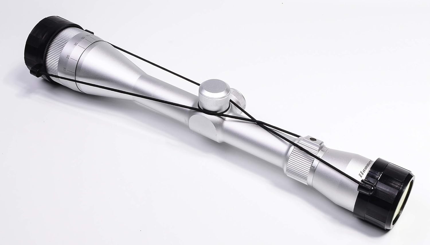 A great scope for use with rifles shooting at range within 400yard range. Classy and attractive stainless chrome silver finish. The parallax adjustable objective can get precise focus at all yardages and get rid of parallax: Magnification: 3x -9x 1 inch mono-tube body Classic 4-plex wire reticle Fully-coated parallax adjustable 40mm objective lens Finger adjustable windage/elevation adjustments with 1/4moa click value Field of view: 34.6ft-12.6ft @100yards Parallex adjustable Eye relief: 3.5inch @3x; 2 3/4inch @9x Overall lenght of the scope: 13inch Bungee corded lens caps included Includes a set of 7/8" weaver rail scope rings with see-thru opening in matching stainless chrome silver finish