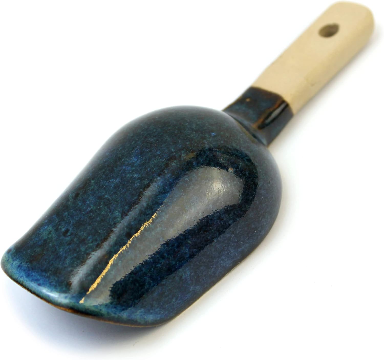 Handmade from stoneware clay, the purchaser guarantees a very durable product that is dishwasher safe and heat and cold resistant. Decorated with an eye-catching glaze. Each piece is unique. The spoons are handmade, so no two specimens are identical, they differ in shape and size and sometimes even in the shade of the glaze. All made in one batch and fired together in the oven are presented here under one common product, but note the differences due to the process. Each product is carefully packaged. Please note that actual colours may vary slightly from those shown on the screen. Spoon length: approx. 13-14 cm; Spoon width: approx. 5.5 cm. Who doesn't like to receive unique and carefully crafted gifts? Everyone likes them. That's why we have unique pieces for you that inspire and add charm to your tables and desks, and yes, they are not mass-produced as with the hundreds of mattresses on the market. The small workshop Las Mater was founded in 2021 and its artfully crafted tea accessories are a hit. They are fired at 1200 degrees Celsius from specially made clay and are beautiful and durable.