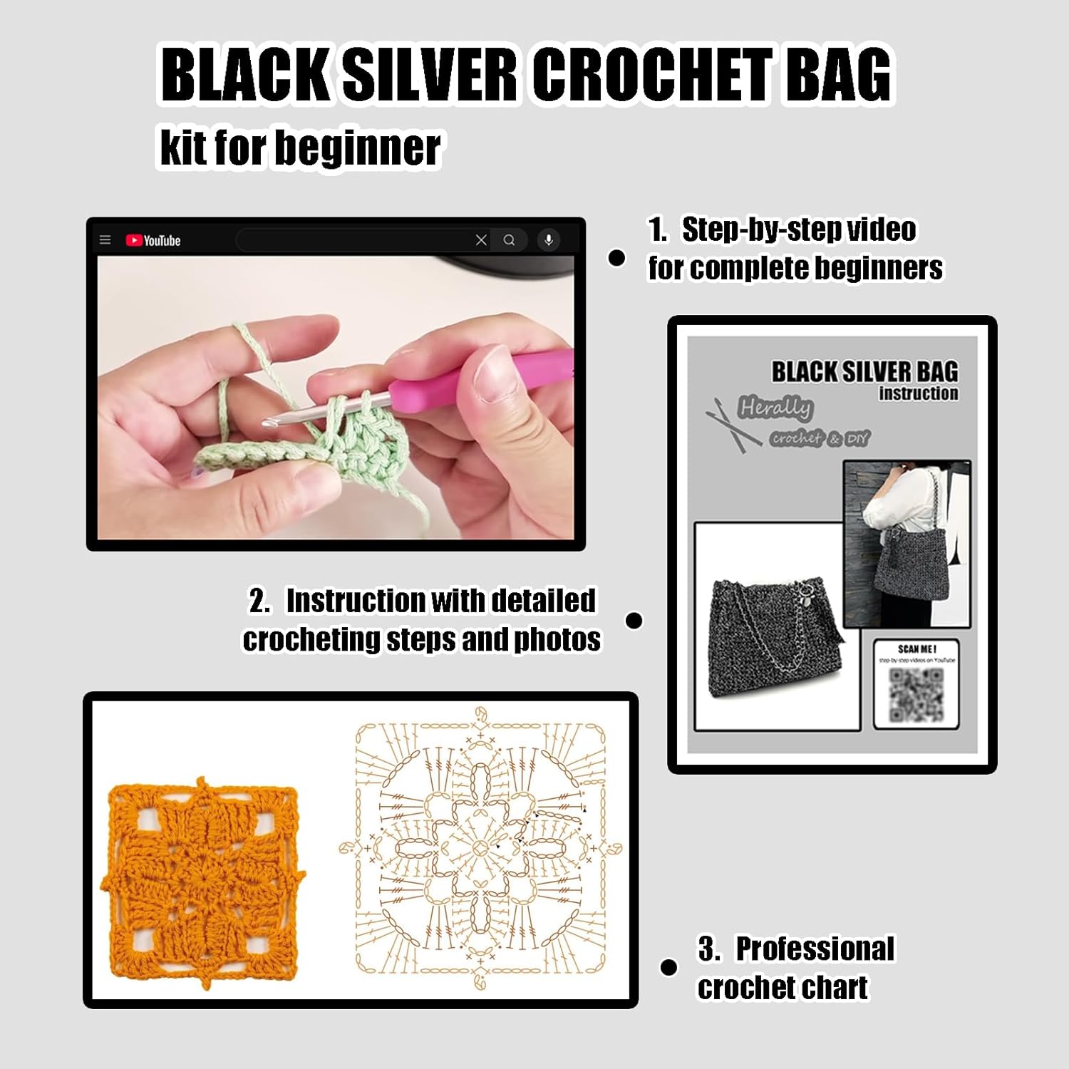 🌺ALL-IN-ONE CROCHET KIT FOR BEGINNER: Herally crochet kit of bag contains yarn, hook, sewing needle, stitch marker, accessories, instruction, and video tutorial. For people who don't even know anything about crochet could complete our crochet kit. Don't worry about the lack of yarn, we have prepared enough yarn for our crochet kit to finish the bag.