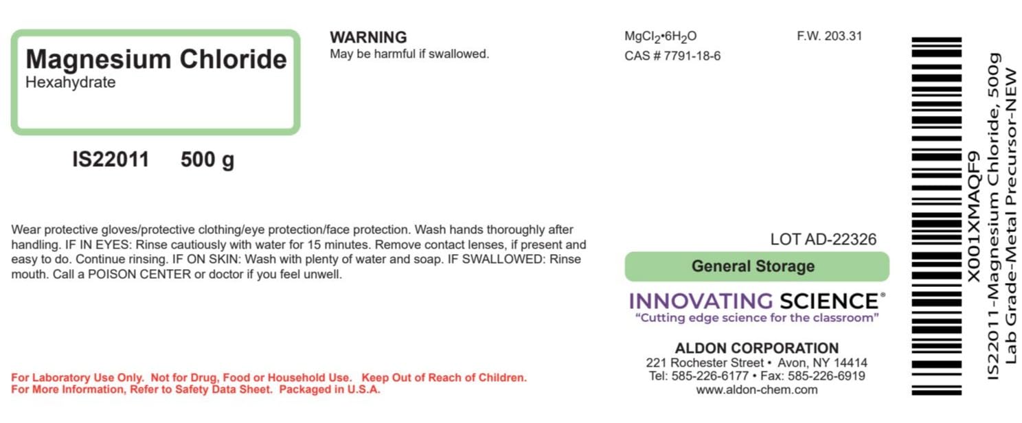 Magnesium Chloride, 500g - Laboratory GradeSingle, 500g bottle of magnesium chloride. Magnesium chloride is often used as a metal precursor, making this chemical a perfect fit in any educational lab dealing with chemistry or inorganic chemistry. This chemical is laboratory grade, and is suitable for use in any educational or research laboratory. Safe handling and storage procedures printed directly on the bottle. The Curated Chemical Collection by Innovating Science is comprised of high quality chemical products that manufactured in the United States.For Laboratory Use Only. Not for drug, food or household use. Keep out of reach of children. For more information, refer to the Safety Data Sheet.