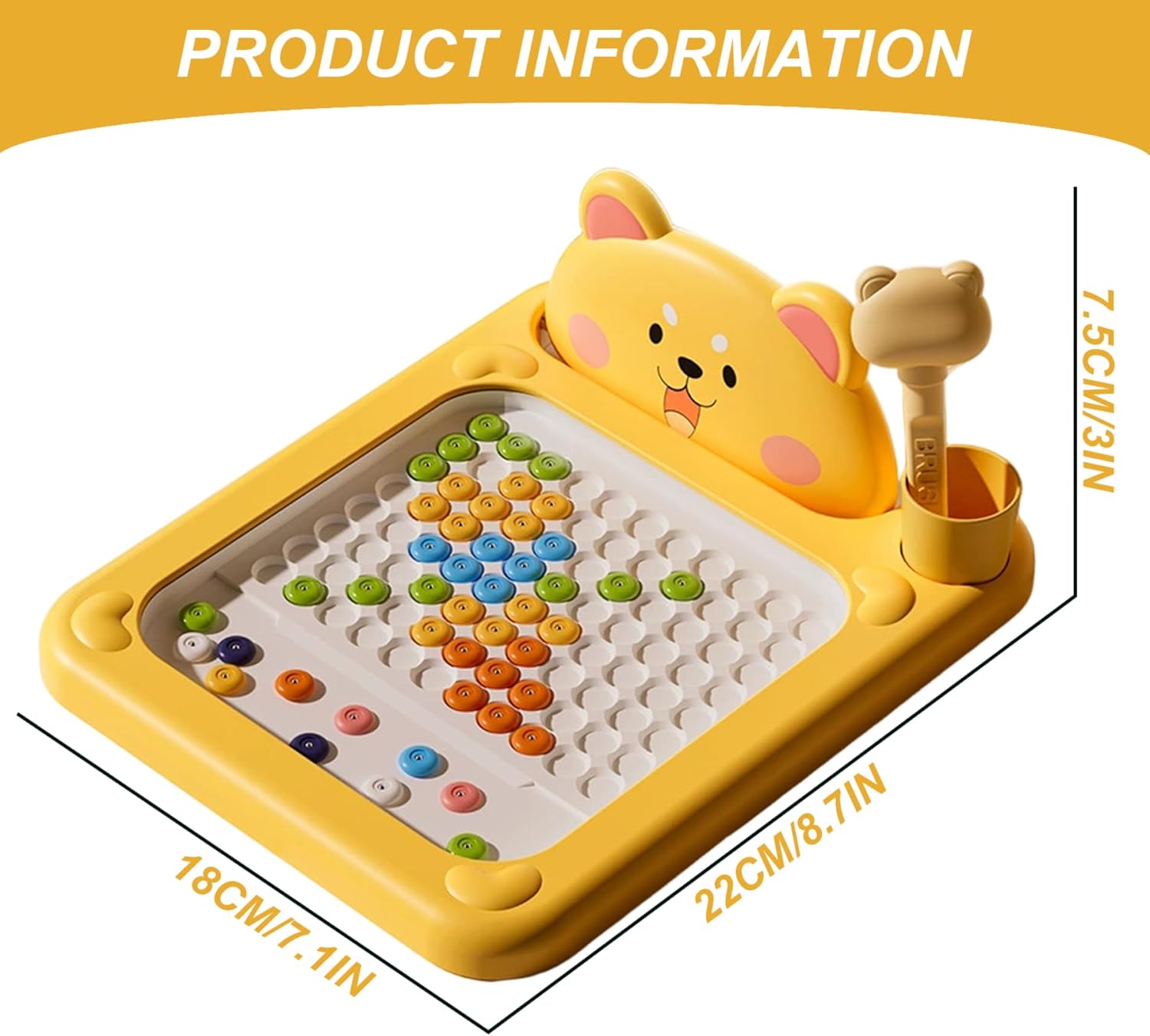 Description: This Magnetic Drawing Board Cartoon Magnetic Dot Art set is an innovative educational toy designed to ignite creativity and support developmental skills in toddlers and kids. Featuring a magnetic doodle board with a user-friendly magnetic pen and multiple pattern booklets, it allows children to create vibrant dot designs repeatedly without mess or fuss. Crafted with child-safe materials, the board ensures both longevity and safety, making it suitable for everyday play. Its compact and portable design lets kids carry it anywhere, ideal for home or travel entertainment. This magnetic drawing board engages children's imagination while improving hand-eye coordination and fine motor skills, fostering both fun and learning. The mess-free, inkless magnetic beads provide parents peace of mind regarding cleanliness, while the reusable artwork promotes eco-friendly play. A thoughtful gifts choice, this magnetic dot art board encourages toddlers to explore art and creativity confidently, making it a valuable addition to any child's educational toy collection. Features:. Magnetic Drawing Board. -Color: Yellow. -Material: Plastic. -Size: Small: 22x18cm/8.7x7.1inch. Note:Manual measurement, please allow slight errors on size.The colors may exist slight difference due to different screens. Package Including 1 x Magnetic Drawing Board