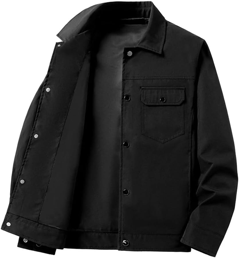 Lining Material:PolyesterMaterial:PolyesterApplicable Season:Spring And AutumnApplicable Scene:CasualDecoration:NoneSleeve Style:RegularHooded:NoType:RegularThickness:StandardClosure Type:Single BreastedCuff Style:ConventionalPattern Type:SolidCollar:O-NeckStyle:CasualClothing Length:RegularOuterwear Type:JacketsGender:MenItem Type:Outerwear & CoatsColor:Black Khaki Gn8
