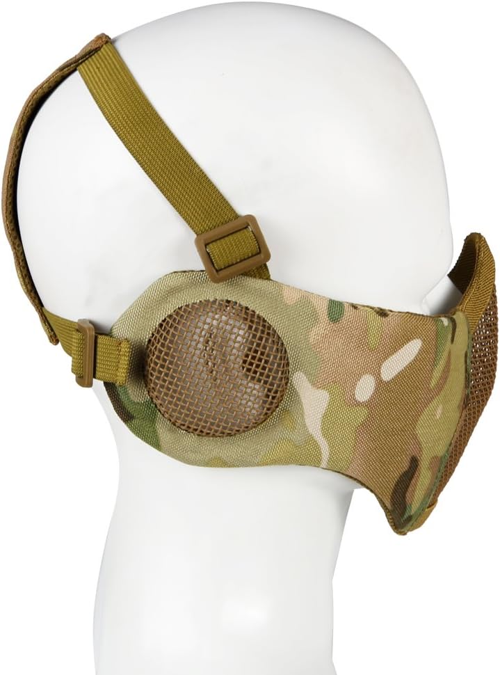 Weight: 200 g, lightweight, comfortable, breathable and foldable design for easy transport. The fabric on the edges is soft and strong, so it will not hurt the face when wearing, providing comfort and good protection. The holes in the airsoft mask are small enough to prevent you from being hit by your airsoft particles or paint balls on your face Adjustable elastic Velcro straps for a slight stretch to better fit your face. The mesh ear cups make it easy to use the headset with this mask.