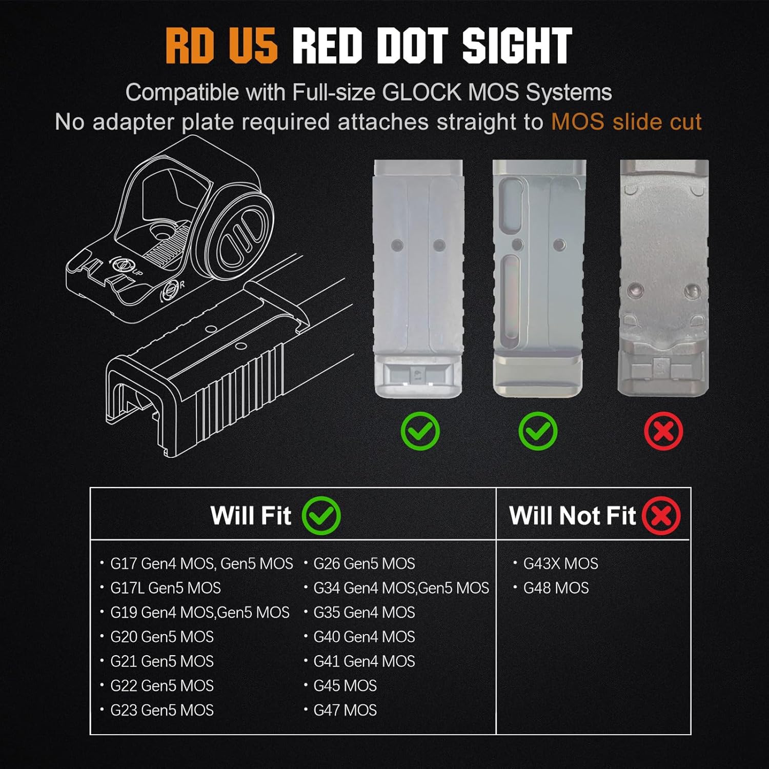 ohhunt RD U5 3 MOA Red Dot/Green Dot Reticle Open Reflex Sight 7075 Aluminum 3000G Shockproof Shake Awake Sight compatible with Full-size Glock MOS Systems