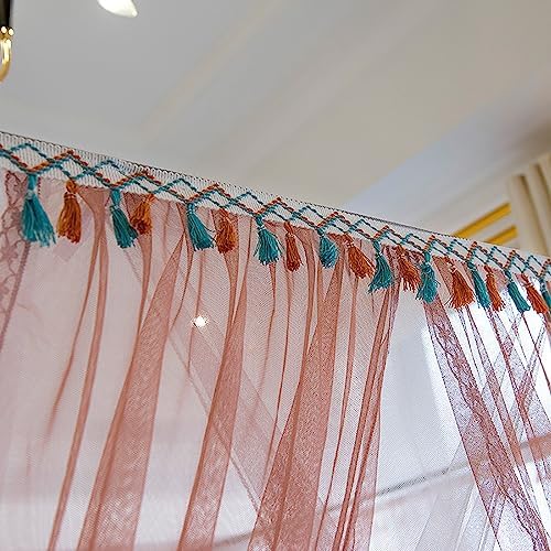 This combination of canopy bed curtain yarn and bracket can meet all your needs in one set. The design is romantic and exquisite, just like a princess' room. Easy to install, saving you worry and effort.Features:1. Top all-round protection. The classic four-opening design provides you with a 4-dimensional comfortable space and more scientifically helps you enjoy a comfortable and harmonious sleep on private land.2. Cover multiple sizes. There are 5 sizes for your choice, please measure before purchasing.3. The bracket includes a stainless steel column, an upper rod, a presser foot plate, and a three-way joint. Accessories include cup tops and tent hooks.4. The top of the tulle is designed with exotic fringed lace, which will make your bedroom more elegant and unique.5. Stainless steel bracket, our bracket has been thickened, and the column is a spiral stainless steel column, which is strong and durable.Sizes:Twin: width1.2M/47.2IN, length2M/78.7IN, height 2M/78.7INFull: width1.5M/59IN, length2M/78.7IN, height 2M/78.7INQueen: width1.8M/70.5IN,, length2M/78.7IN, height 2M/78.7INKing: width1.8M/70.5IN, length2.2M/86.6IN, height 2M/78.7INCalifornia King: width2M/78.7IN, length2.2M/86.6IN, height 2M/78.7IN(Sizes are measured by hand and may vary slightly.)Package contains:a set of bracketsa curtain
