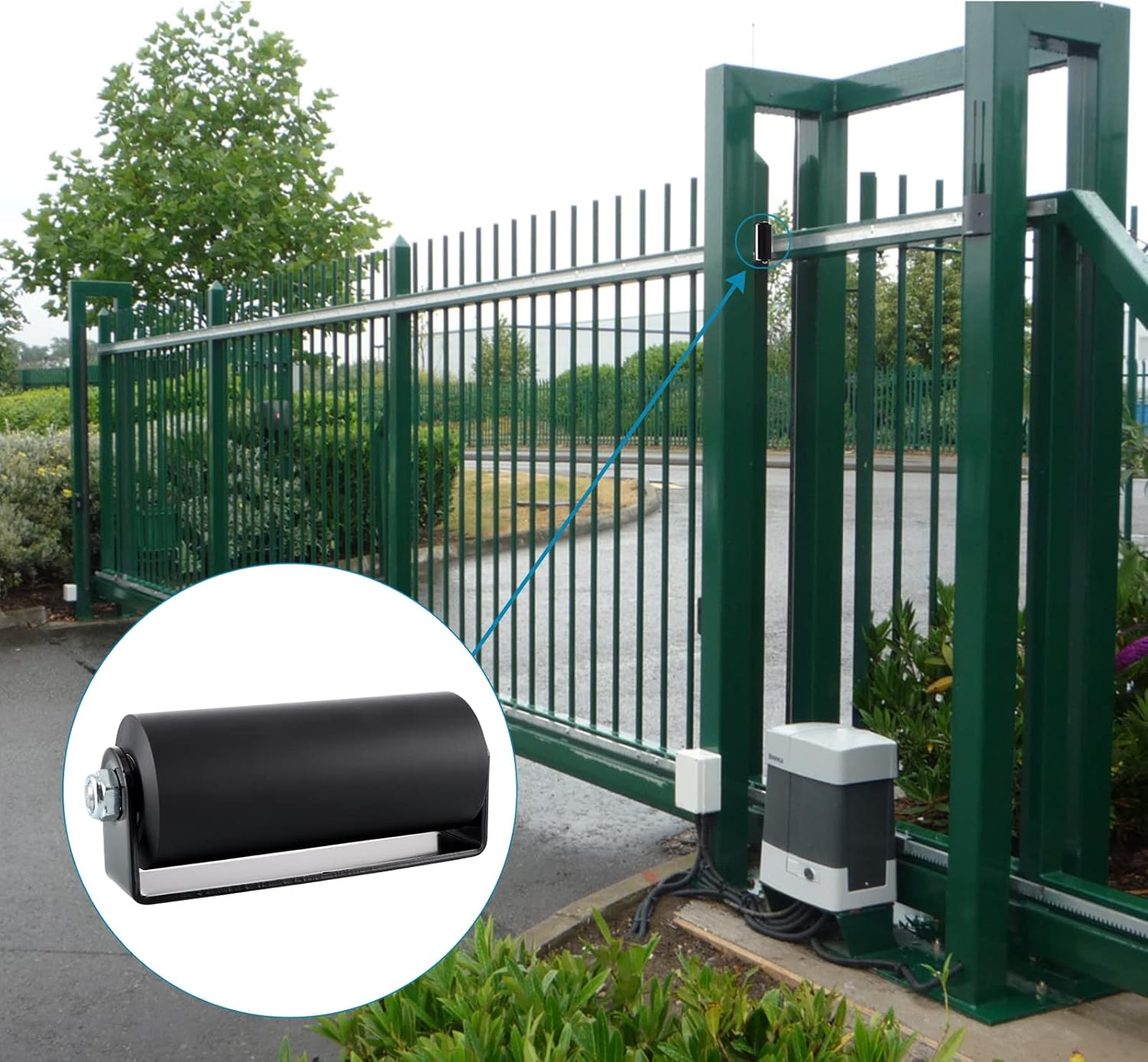 This is a well-made slide gate guide roller with post welded bracket. The roller is made of nylon, solid and wear resistant to stabilize the sliding gate. The mouting bracket is made of AISI 1045 steel with black powder coat finish, sturdy and durable for use. It's great for heavy sliding gates, rolling fence and trailer. Specifications: Material: Hard Nylon Roller Diameter: 2.48 Inches Roller Length: 6 Inches Bracket Size: 6.5 x 1.5 Inches (L x W) Package Includes: 2 x Slide Gate Guide Rollers