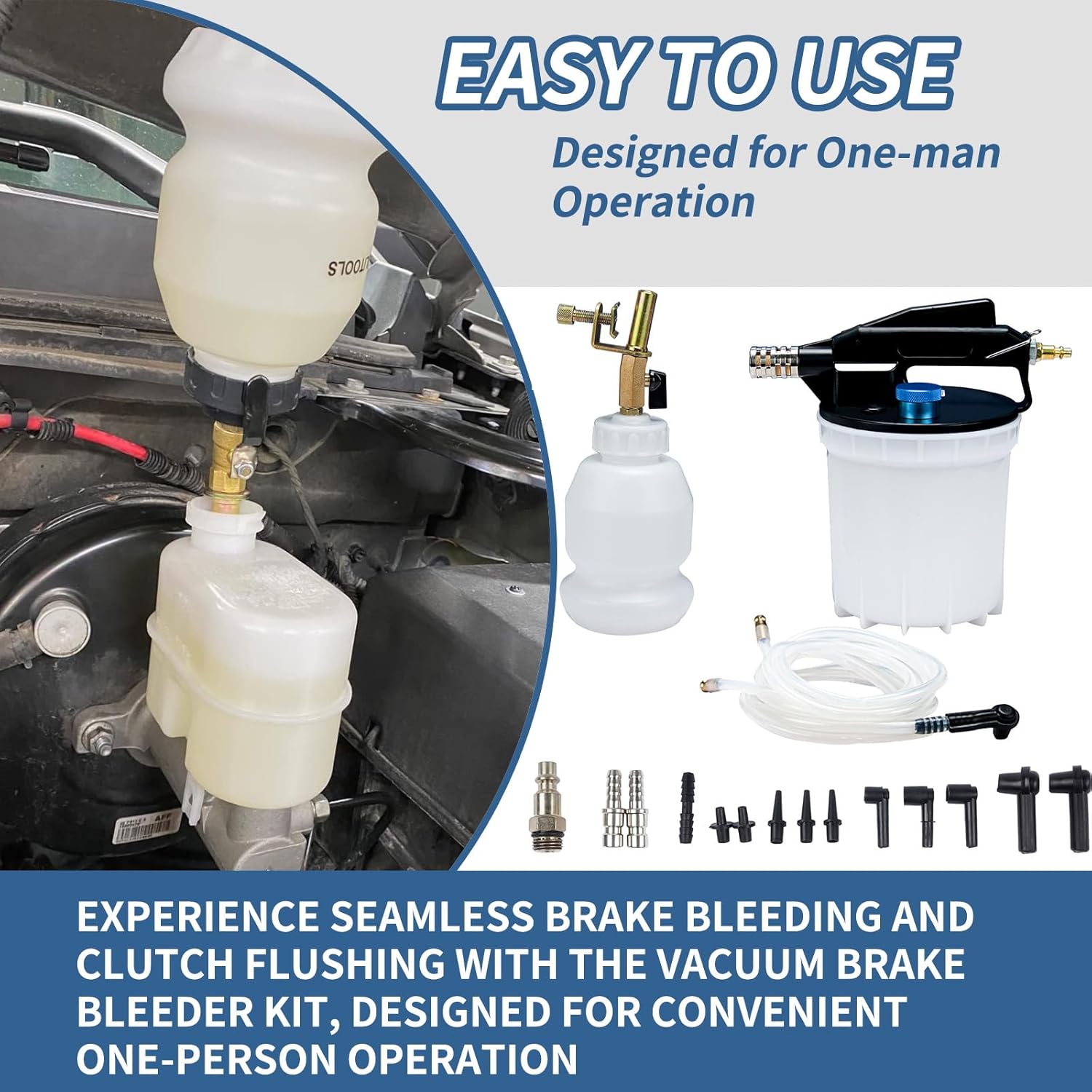 Vacuum Brake Bleeder Kit with 2L Brake Fluid Extractor 1L Refilling Bottle & Adapters Pneumatic Bleeder Tool