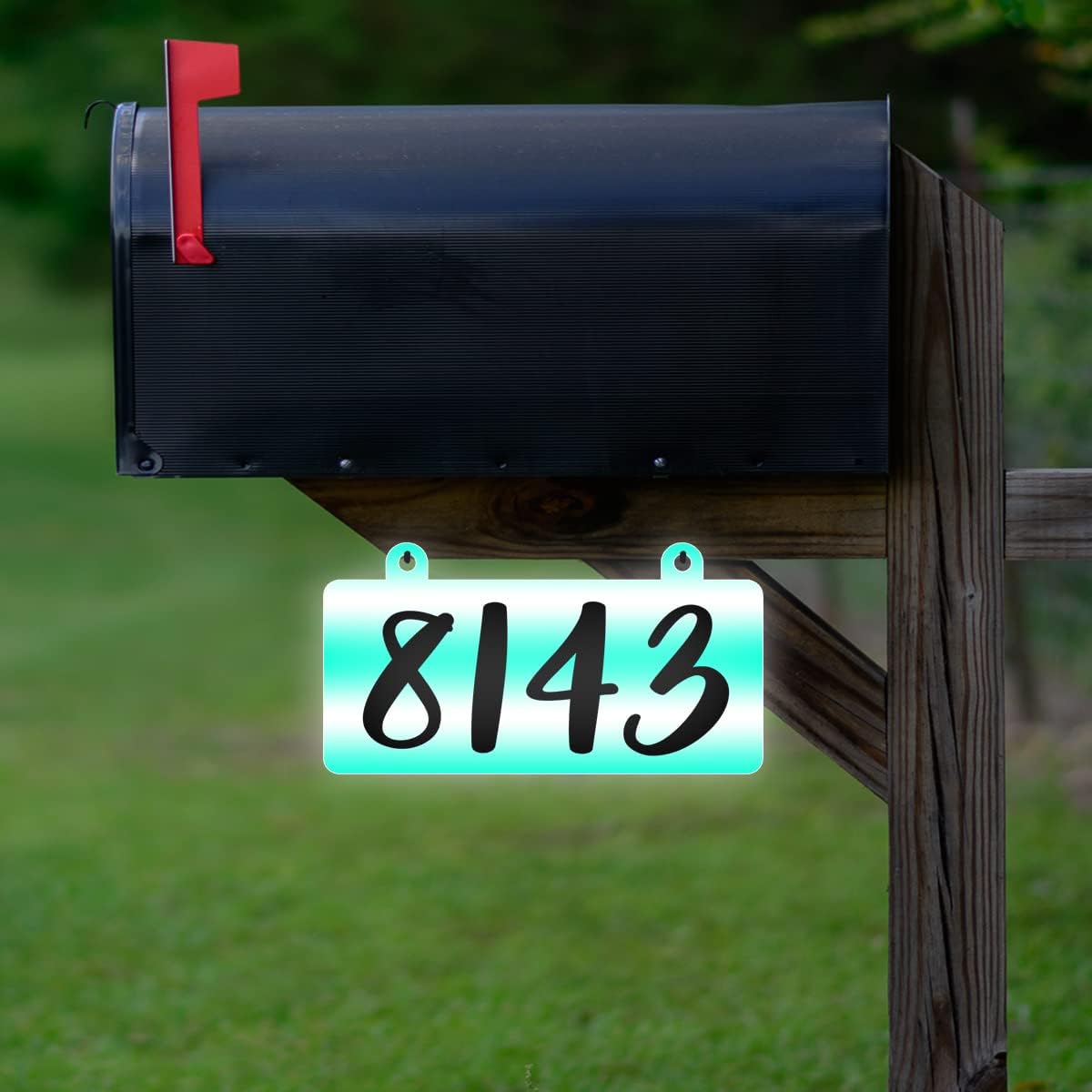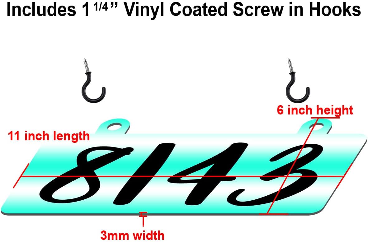 Custom address numbers reflective aluminum composite sign. Durable aluminum composite with a 3mm thickness and pre drilled holes. Includes (x2) 1 1/4" vinyl coated screw in hooks. Made with reflective properties to easily be seen at night. Durable, long lasting, weather proof, UV-proof, and scratch resistant. Designed to be aesthetically pleasing, enhance curb appeal and provide long lasting enjoyment.